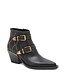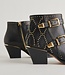 Western inspired ankle boots with zipper made of smooth black leather. Very nicely finished with gold colored buckles and studs. Read more..