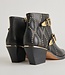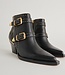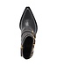 Black leather women's ankle boots from the new winter collection of Dolce Vita, article Ronnie Black Leather. These striking, western-inspired short boots are made entirely of leather, lined with soft fabric and leather and the leather-look sole is flexible without a profile. The heel slopes slightly inwards, is 6 cm high and has a solid wood-look heel. The insole has memory foam, which makes it feel very soft, it is fixed and cannot be removed. The tip of the nose is pointed. This model boot closes with a zipper. It fits snugly around the ankle. The gold-colored studs, decorative buckles and edge around the heel give the boots an elegant western look. Wear it stylishly with jeans or combine it with a dress or skirt.