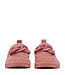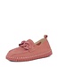 Lightweight women's loafers in a beautiful blush pink from the Danish brand Ilse Jacobsen, item number Tulip Loafer 3884 Rouge. These loafers are made of recycled microfiber with a decorative, laser-cut perforated pattern. The upper is attached to the sole with recycled thread. No glue is used. The shoe's interior is unlined and features a soft, thick, comfortable, removable footbed covered in suede. The flexible, blush-colored sole is made of natural rubber, with a striking pattern and anti-slip tread. A beautiful detail is the large pink chain link. Super cute loafers with a very comfortable fit. The sole is 2 cm thick and 2.5 cm at the heel.