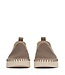 Lightweight women's loafers with a wedge sole in a beautiful green-brown colour from the Danish brand Ilse Jacobsen, item number Tulip Slip-on 3078 Falcon Pearled Ivory. These slip-ons are made of recycled microfiber with a decorative, laser-cut perforated pattern. Elasticated sides ensure easy slip-on and a comfortable fit. The upper is attached to the sole with recycled thread; no glue is used. The shoe features a soft, thick, comfortable, removable footbed covered in suede, providing extra cushioning and support for comfortable walking all day long. The flexible off-white sole is made of natural rubber, with a striking pattern and anti-slip tread. These are super stylish loafers with a very comfortable fit. The Tulip slip-on shoe with a wedge sole combines comfort and style in a sustainable way. The sole is 3 cm thick and the heel rises to 4.5 cm.