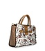The lining is made of a cotton fabric with a botanical motif. Inside the bag, there are various compartments so that all essentials such as wallet, phone, makeup, ID, and (sun)glasses can be stored securely. The bag closes with a zipper. The width is 31 cm, the height 22 cm, and the base is 8 cm.