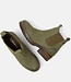 Olive green nubuck leather ladies ankle boots from the new winter collection of Lazamani, article number 68.001 Green. These cool chelsea boots are made entirely of leather, are lined with soft fabric and leather and the chunky track sole is made of rubber. A nice detail is the ribbed elastic in the color of the green leather. The nubuck leather has been polished on the nose and heel, which gives it a vintage look. The boot has no zipper, you put them on using the loops. This model is fitted around the ankle. Wear it with jeans or combine it cool with a dress, skirt or Bermuda shorts.