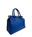 Electric blue leather, luxury ladies doctor bag model shoulder bag from the Italian bag brand Modarno. This elegant bag is made of grain leather with two short handles and a long blue leather strap to carry the bag over the shoulder or crossbody. It opens and closes with a rotating clip closure. The metal accessories are gold-colored. The inner lining is black in color and is made of a woven fabric. The inside is divided into two large compartments with a zip pocket in the middle, against one side there is a small zip pocket and against the other a small leather insert pocket. A nice detail is the key ring that hangs on the short handle. This can be removed. Bag with a stiff structure, excellent finishes, a product with an excellent price-quality ratio. Suitable for all occasions.
