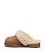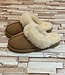 Trendy mules and slippers from Sweet Heritage, article Luge Chestnut. The mules are made entirely of sheepskin and have a sole suitable for indoor and outdoor use.