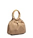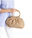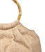 Beige linen handbag from the new Spring/Summer 2026 collection by the Spanish fashion brand Unisa. The item name is Zemma Eco Linen Skin. This bag is made of coarsely woven linen and features two round bamboo handles, giving the bag a chic look. Inside, the model has one large compartment and a small zippered pocket on the side. The narrow gold leather shoulder strap is long enough to wear over the shoulder or crossbody. The bag closes securely with a zipper. The dimensions are: height 24 cm, width 36 cm, bottom depth 9 cm.