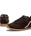 Dark brown suede women's sneakers from the new winter 2025 collection by Unisa. Item number: Dalai_BS Brown/Dusk. These sneakers are made entirely of dark brown suede, are lined with leather, and have a light brown rubber sole with a small anti-slip tread. The insole is removable. A nice detail is the brown metallic leather piece on the heel and the light pink suede stripe on the side. The style fastens with flat, dark brown laces. Brown is a key fashion color this winter, and it will continue to be widely seen next spring and summer.