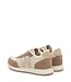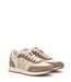 Beige and camel brown city sneakers made of fabric combined with suede. From the new Spring/Summer 2026 collection of the Danish brand Woden, item WL740 Ronja color Cortado Multi. This super beautiful sneaker is lightweight, features a removable cork footbed, and an off-white and beige lightweight rubber sole with tread. The lining is made of mesh fabric, which feels wonderfully soft to wear. The sneakers close with flat laces whose color matches the overall design well. Striking yet beautifully balanced are the various panels made of diverse materials such as suede, mesh, nylon, fish leather, and leather. All leather is from LWG certified production.