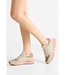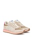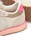 Pink and beige lightweight women's trainers made of various materials, including suede, mesh, leather, satin, and fish leather details. Featuring a comfortable, removable cork footbed. Read more..