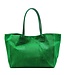 Grass green leather, with croco print ladies shoulder bag from the Italian bag brand Zeen. Item name Zen Lola Grass Leather. This bag is made entirely of leather and has a beige fabric lining. This model is equipped with two grass green coloured leather shoulder straps, attached firmly and visibly on the outside. The inside is one large compartment and has a small zipper pocket against the side. The bag closes with the straps with press stud and magnetic closure and the model becomes smaller, more pyramid shaped (see photo). Or close with a zipper and the model then shows wide, as can be seen at the second picture.