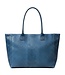 Jeans blue leather, with crocodile print, ladies shoulder bag from the Italian bag brand Zeen. Item name Zen Lola Jeans Blue Leather. This bag is made entirely of leather and has a beige fabric lining. This model is equipped with two jeans blue leather shoulder straps, firmly and visibly attached to the outside. The inside is one large compartment and has a small zipper pocket against the side. The bag closes with a zipper and the model shows wide like a shopper. Or you close it with the straps with press stud and magnetic closure and the model becomes narrower, more pyramidal in shape, as shown in this photo.