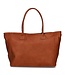 Cognac leather ladies shoulder bag from the Italian bag brand Zeen. Article name Zen Lola 2 Cognac. This bag is made entirely of greased leather, which gives color shades and has a beige fabric lining. This model is equipped with two cognac leather shoulder straps, firmly and visibly attached to the outside. The inside is one large compartment and has a small zipper pocket on the side. The bag closes with a zipper and the model then shows wide. Or you can close it with the straps with snap button and magnetic closure and the model becomes narrower, more Pyramid in shape, as this photo shows.