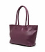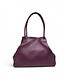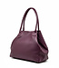 Bordeaux leather women's shoulder bag from the Italian bag brand Zeen. Product name: Lola Dollaro Bordo. This bag is made entirely of grained leather with a beige fabric lining. This model features two bordo leather shoulder straps, securely and visibly attached to the outside. The interior is one large compartment with a small zippered pocket and slip pocket on the side. The bag closes with a zipper, making it appear wide (see the second photo in the gallery). Alternatively, you can close it with the straps, which have a snap button and magnetic closure, making it narrower and more pyramid-shaped, as shown in the first photo.