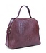 Brown-red leather handbag. The leather is finished with a braided look. It has two large compartments, both with zippers, and the long shoulder strap allows the bag to be worn crossbody. Read more..