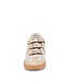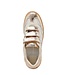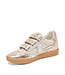 Dames sneakers met klittenband sluiting uit de nieuwe lente/zomer 2025 collectie van het merk Dolce Vita, artikel Notice Velcro Silver/Gold Leather. Deze hippe sneakers hebben een dik zacht uitneembaar voetbed met memory-foam, het bovenste laagje is van leer. De toffee kleurige rubber loopzool heeft een klein honinggraad profiel. De voering is gemaakt van stof wat heerlijk zacht draagt. De neus, klittenbanden, tong en hiel is van goudkleurig krakelee leer. De streep op de zijkant is van zilver krakelee leer en het kleine biesje bij de neus is van glad zilver kleur leer. De zijkant is gemaakt van glad beige leer, het bovenste deel op de hiel van donkerbeige glad leer en het patroon bij de sluiting en biesje achterop de hiel zijn beide van beige suède. Mooi detail is het kartelrandje bij de sluiting, om de klittenbanden en bovenaan bij de tong. De verschillende vlakken en details zijn mooi in balans en geven deze sneakers een bijzondere look.