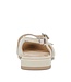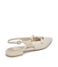 Moderne beige leren zomer loafers voorzien van drie smalle bandjes met mooie gespen met pareltjes erin verwerkt. De binnenzool is zacht gevoerd met memory foam. Lees meer..