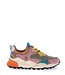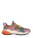 Roze gecombineerd met verschillende kleuren zoals grijs, blauw, lila, beige, luipaard en oranje dames sneakers. Komt uit de nieuwe 2025 herfst/winter collectie van het Japanse merk Flower Mountain, artikel Rulis Woman suède/nylon Squared kleur Roze Multi. Deze opvallende trainers zijn gemaakt van suède gecombineerd met nylon, koehaar en rib stof. Het haar is bewerkt met een luipaard patroon. De schoen heeft een uitneembaar, antibacterieel, van natuurlijk kurk, voetbed. De ultra lichte rubberen zool is off-white met oranje van kleur en met zwarte spikkels er doorheen. De zwarte onderkant heeft een grof anti slip profiel. De voering is gedeeltelijk van stof en gedeeltelijk van leer. De sneakers sluiten met een platte, geel katoenen veter. De kleuren combinatie en uitgesneden patronen maken de schoen stoer, speels en opvallend. De Yamano-sneakers combineren actieve details met een coole esthetiek en functioneren daardoor perfect als een dagelijkse loopschoen.