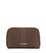 Toilettas van stevige stof in een bruin met donkerblauwe streep en stip. Heeft één groot vak, een klein steekvak en sluit met een rits. Lees meer..