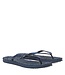 Lichtgewicht dames slippers met plateauzool helemaal in donkerblauwe kleur van het Deense merk Ilse Jacobsen, artikelnummer Cheerful01 kleur 620 Indigo. De teenslippers zijn licht en flexibel. Door de zool met structuur zitten de slippers heerlijk en creëert het een zacht massage-effect. Het geheel is gemaakt van rubber met PVC. De bovenste band is subtiel afgewerkt met glitters. Super mooie slippers met een heel comfortabele pasvorm. Zool is 1,5 cm dik en 2 cm bij de hak.