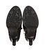De elegante hak is van zwart leer en heeft een hout motief. Mooi detail zijn de zilveren kraaltjes op de zoolrand.