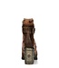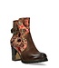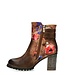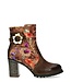 Bruin geolied suède enkellaarzen bewerkt met gekleurde bloemen, artikel Kateo Marron. Opvallend detail is de goudkleurige hoge hak en grote gouden gesp. Lees meer..