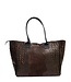 Italiaanse schoudertas van bruin leer bewerkt met crocoprint..