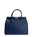 Jeans blauw leren, luxe dames dokterstas model schoudertas van het Italiaanse tassenmerk Modarno. Deze elegante tas is gemaakt van nerfleer met twee korte hengsels en een lange blauw leren band om de tas over de schouder of crossbody mee te dragen. Het opent en sluit met een draaibare clipsluiting. De metalen accessoires zijn goudkleurig. De binnenvoering is zwart van kleur en is van een geweven stof. De binnenzijde is opgedeeld in twee grote vakken met in het midden een ritsvak, tegen de ene zijkant zit een klein ritsvak en tegen de andere een klein leren insteekvakje. Leuk detail is de sleutelhanger die aan het korte hengsel hangt. Deze kan eraf. Tas met een stijve structuur, uitstekende afwerkingen, een product met een uitstekende prijs-kwaliteitverhouding. Geschikt voor alle gelegenheden.