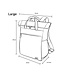 Elke Large tas is 45cm x 32cm x 14.5cm. Inhoud is 20 liter.