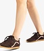 Donkerbruin suède dames sneakers uit de nieuwe winter 2025 collectie van het merk Unisa. Artikelnummer Dalai_BS Brown/Dusk. Deze gympen zijn geheel gemaakt van donkerbruin suède, zijn met leer gevoerd en hebben een lichtbruin rubber zool met een klein antislip profiel. De binnenzool is uitneembaar. Mooi detail is het stukje bruin metallic leer op de hiel en de lichtroze suède streep aan de zijkant. Het model sluit met een plat, donkerbruin kleurige veter. Bruin is deze winter een belangrijke modekleur, ook volgend voorjaar en zomer is bruin nog volop te zien.