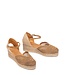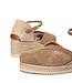 Luxe dames espadrilles met ronde neus gemaakt van een mooi geborduurde stof van het Spaanse merk Unisa, artikelnummer Ceuta_KS Mistral. De voering is deels van stof en deels van leer en de binnenzool voelt comfortabel zacht door de foamlaag. De V-uitsnijding voor op de voet zorgt voor een goede pasvorm en het staat heel mooi. Het smalle suède bandje sluit met een goudkleurige gesp. De hiel en de sleehak zijn van jute wat de bekende espadrille look geeft. De loopzool is van lichtgewicht EVA en heeft profiel. Alle kleuren zijn in één toon wat het heel makkelijk combineerbaar maakt. Een karaktervol ontwerp, perfect om een vleugje glamour aan je outfits toe te voegen.