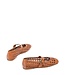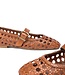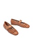 Ballerina met bandje gemaakt van gevlochten leer in de kleur cognac bruin. Verstelbaar op de wreef met een metalen gesp. Lees meer..