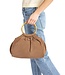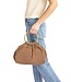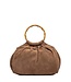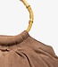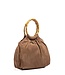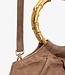 Middelgrote taupe suède handtas met stevige ronde bamboe handvatten. Inclusief lange schouderband en sluit veilig af met een rits. Lees meer..