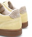 Geel suède dames sneakers in retro stijl met beige zalmleer detail. Voorzien van het bekende Woden kurk voetbed. Lees meer..