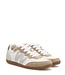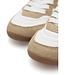 Beige met wit en grijs dames sneakers in retro stijl met platte zool. Voorzien van het bekende, comfortabele, Woden kurk voetbed. Lees meer..