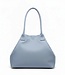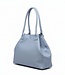 Licht blauw nerf leren schoudertas. Heeft één groot vak, een klein ritsvak en steekvak tegen de zijkant. Sluit met een rits en een magneet drukknoop. Lees meer..