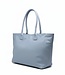 Lichtblauw leren, dames schoudertas van het Italiaanse tassenmerk Zeen. Artikelnaam Lola Dollaro Cielo. Deze tas is geheel van nerf leer en heeft een beige stoffen voering. Dit model is voorzien van twee lichtblauw leren schouderbanden, stevig en zichtbaar aan de buitenkant bevestigd. De binnenzijde is één groot vak en heeft tegen de zijkant een klein rits -en steekvak. De tas sluit met een rits en het model toont dan breed (zie 2e foto in de galerij). Of je sluit het met de bandjes met drukknoop en magneetsluiting en het model wordt smaller, meer Pyramide van vorm, zoals de eerste foto weergeeft.
