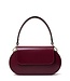 Donkerrood leren schoudertas. Heeft één vak en een klein steekvak tegen de zijkant. Sluit met een rits en een klep met magneet sluiting. Is een box model met kort en lang hengsel. Lees meer..
