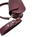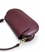 Bordeaux rood leren, klein model, dames schoudertas van het Italiaanse tassenmerk Zeen. Artikelnaam Robijn Bordo Leather. Deze tas is geheel van leer en heeft een zwart leren voering. Dit model is voorzien van twee leren schouderbanden; een kort hengsel en een lange band om crossbody te dragen. De binnenzijde is één vak en heeft tegen de zijkant een klein steekvak. De tas sluit met een rits en met de klep. Onder de klep zit een magneet druksluiting. De Robijn tas is een box model tasje, is niet zacht van vorm, maar strak gevormd als een doosje. Alle accessoires zijn goudkleurig.